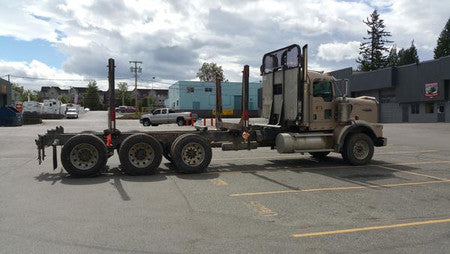 Carrier Spring Service has been repairing logging truck since 1979, when we first opened our doors. These big truck need to be maintained regularly to be able to work daily on the rough terrain hauling logs down our mountainous mountains. Kenworth uses Hendrickson Primaax Suspension on this particular truck. Before the truck could pass vehicle inspection in Abbotsford, we had to make sure all the bushings were new and the suspension was all tightened up with no loose parts.