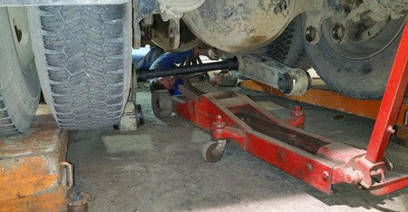 Customer had worn out walking beams. We had to remove the old walking beams and push in out the old bushings. After this is done we push in new Hendrickson walking beams. We have a 200 ton press, this makes the job off pushing out the bushings easier. Each walking beam has 3 bushings, 1 center and 2 end bushings. All the bushings get pushed out and replaced.